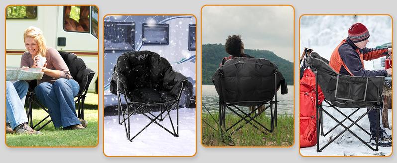 Naudacaa Outdoor Heated Chair - Oversized Camping Chairs, Folding Sports Chair for Patio, Travel Wide&Thick Padding 2*10000Mah Power Bank Included